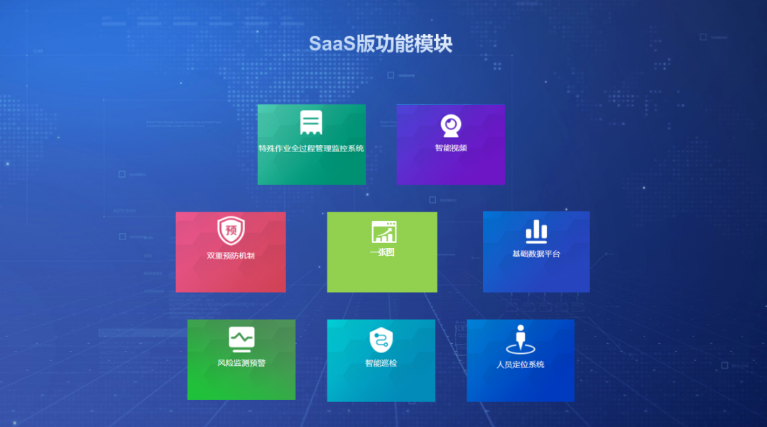海融易通企业安全风险智能化管控平台SaaS版包括生产安全管理一张图、安全基础信息管理、双重预防机制、特殊作业全过程风险监测预警、重大危险源风险监控预警、四模融合定位、智能视频监控、智能巡检等核心模块化产品,全面覆盖生产企业安全风险智能化管控需求,但在软件操作上更加简单、在部署方式上更加灵活、在实施交付上更加快捷,企业可以根据上级管理部门要求,结合当前需求和现状进行组合订阅,帮助企业大幅度缩短建设安全风险智能化管控平台的调研、部署、实施和交付时间,最大化提升生产安全信息化建设效益.
