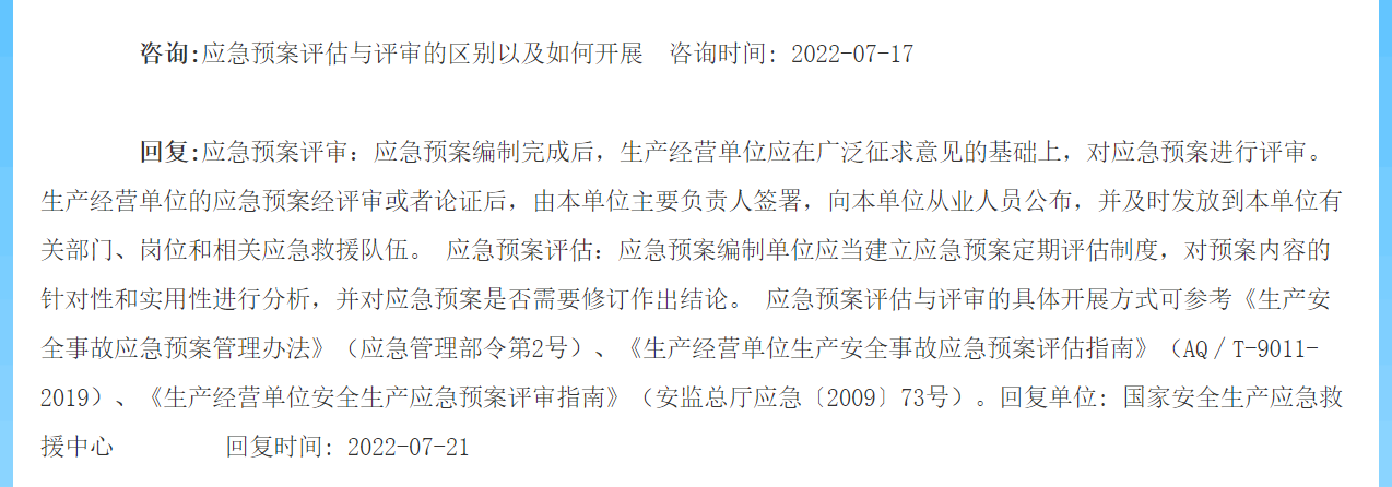 咨询:应急预案评估与评审的区别以及如何开展 咨询时间: 2022-07-17
