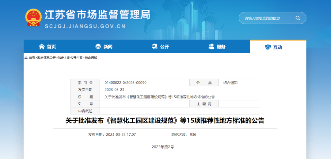 · 海融快讯 | 江苏省《智慧化工园区建设规范》发布,4月23日实施