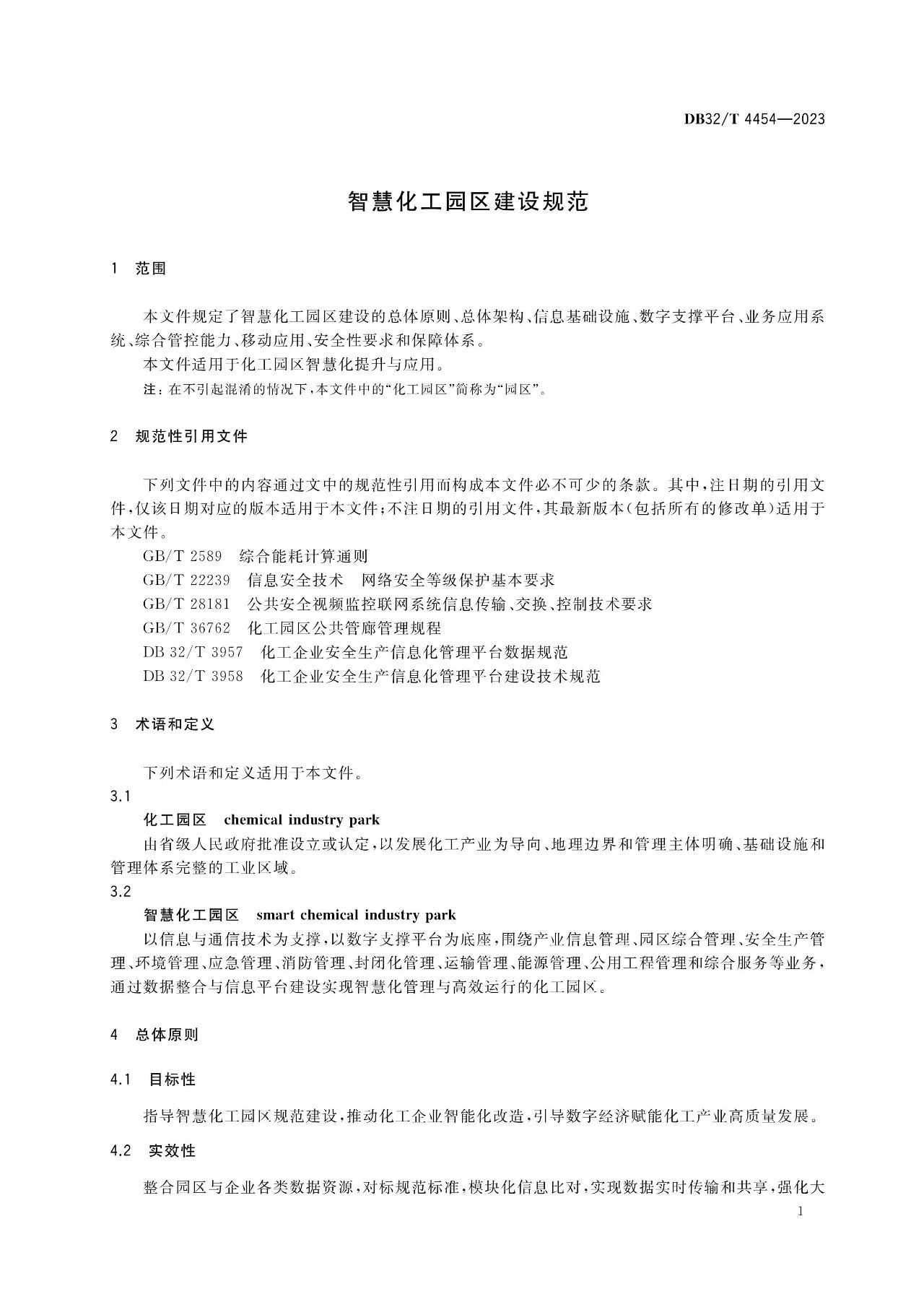 点击下载 DB32/T 4454-2023智慧化工园区建设规范