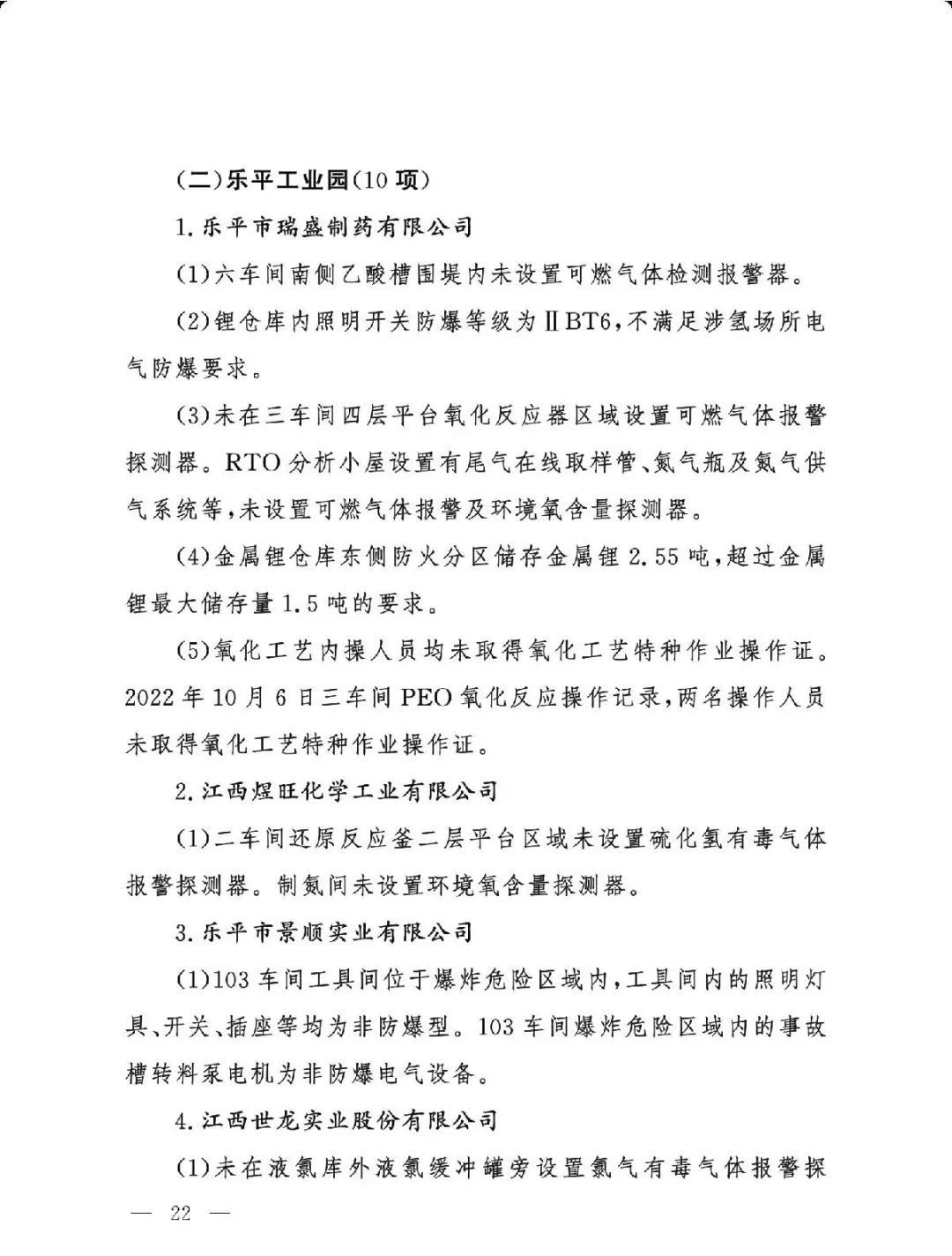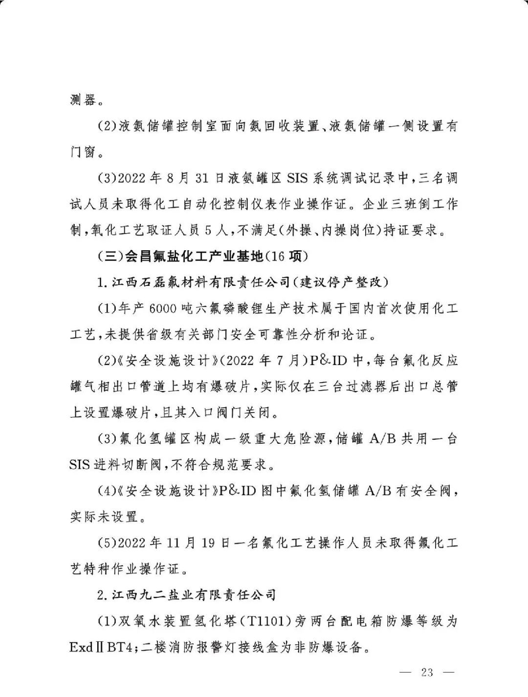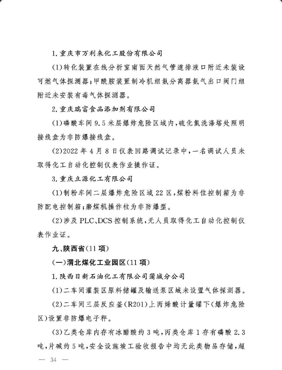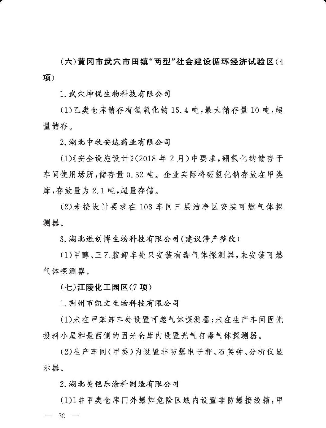 (二)基础差风险高的现状未根本改变。一是部分企业隐患问题突出。江西核查的19家企业平均问题数29.5项,平均重大隐患数2.6项。甘肃核查的24家企业中,62.5%的企业因重大隐患多、不具备安全生产条件被建议停产整改或停用相关设施。二是个别化工园区基础差。山西、湖南、青海还有4个园区尚未认定。