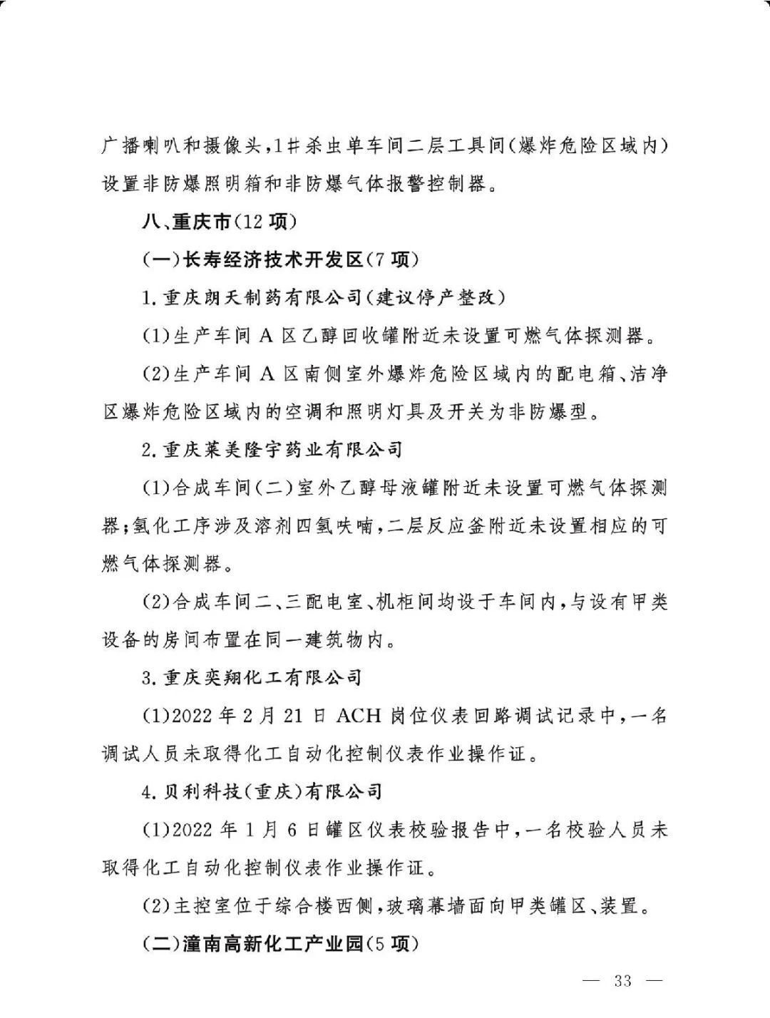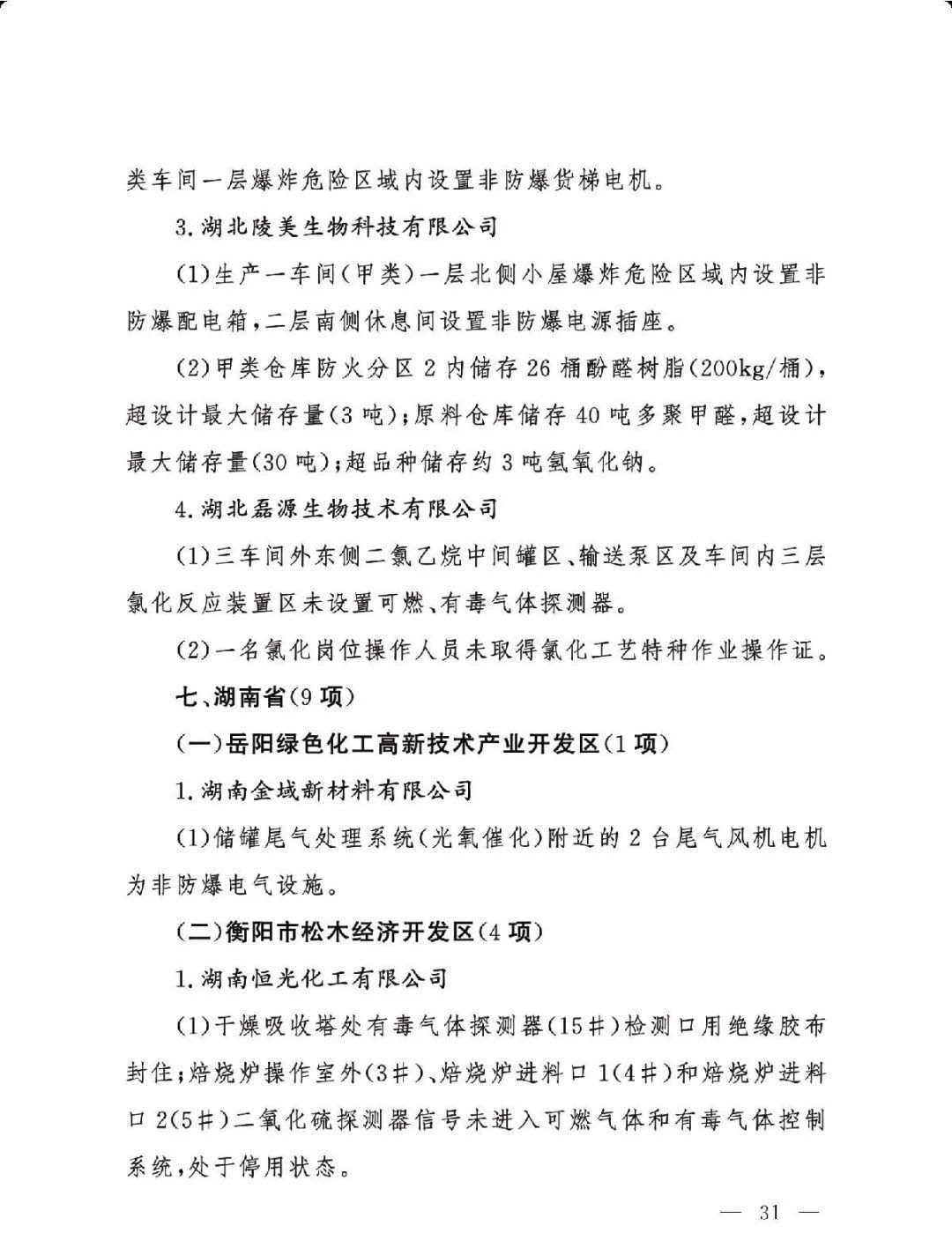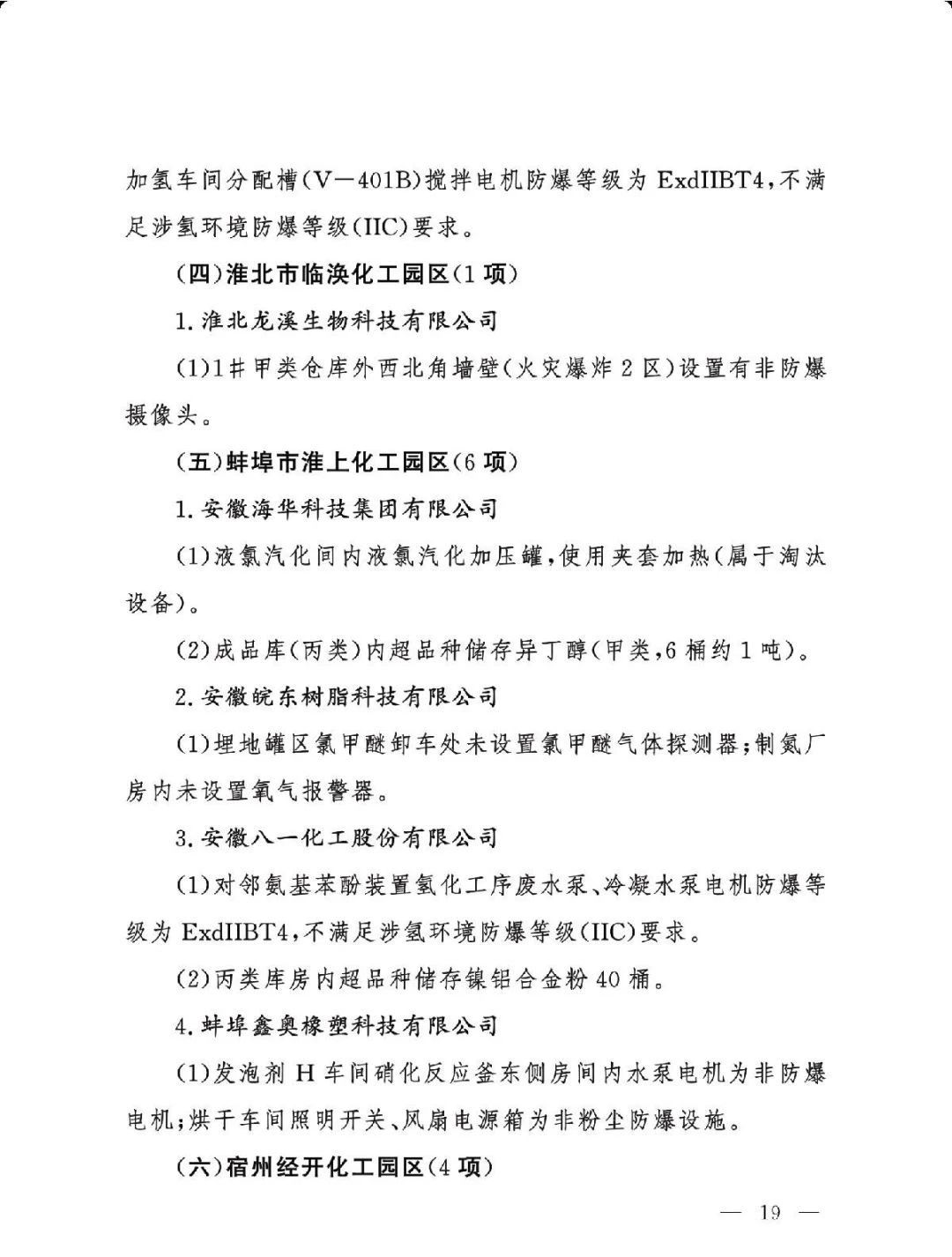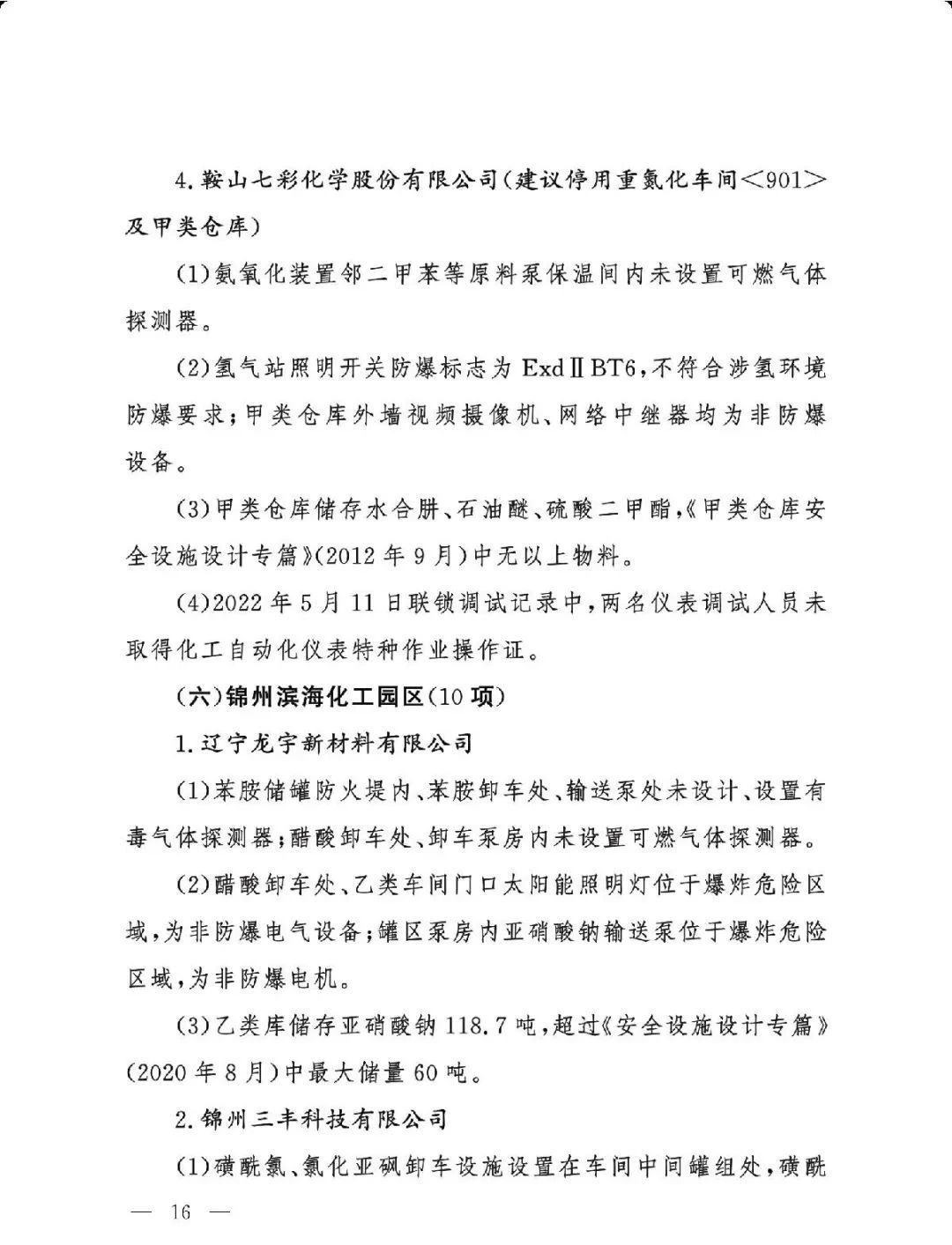 (三)严格问题整改。各有关地区要深刻吸取辽宁盘锦浩业化工有限公司“1·15”重大事故教训,有关省级安委会办公室要对248项重大隐患挂牌督办,督促企业举一反三抓紧整改,确保闭环管理,要对排名后10位的重点县(园区)进行约谈,对目前仍未认定的4个园区加快认定评估工作,对经整改提升后仍无法达到一般安全风险等级的园区取消认定化工园区资格;有关市级应急管理部门要组织对整改情况进行复核,对建议复核后履行复产手续的企业要严格复产程序;有关省级应急管理部门要组织专家对建议停产或停用相关设施设备的41家企业整改情况以及安全条件重新确认,确保具备安全生产条件后方可恢复生产。