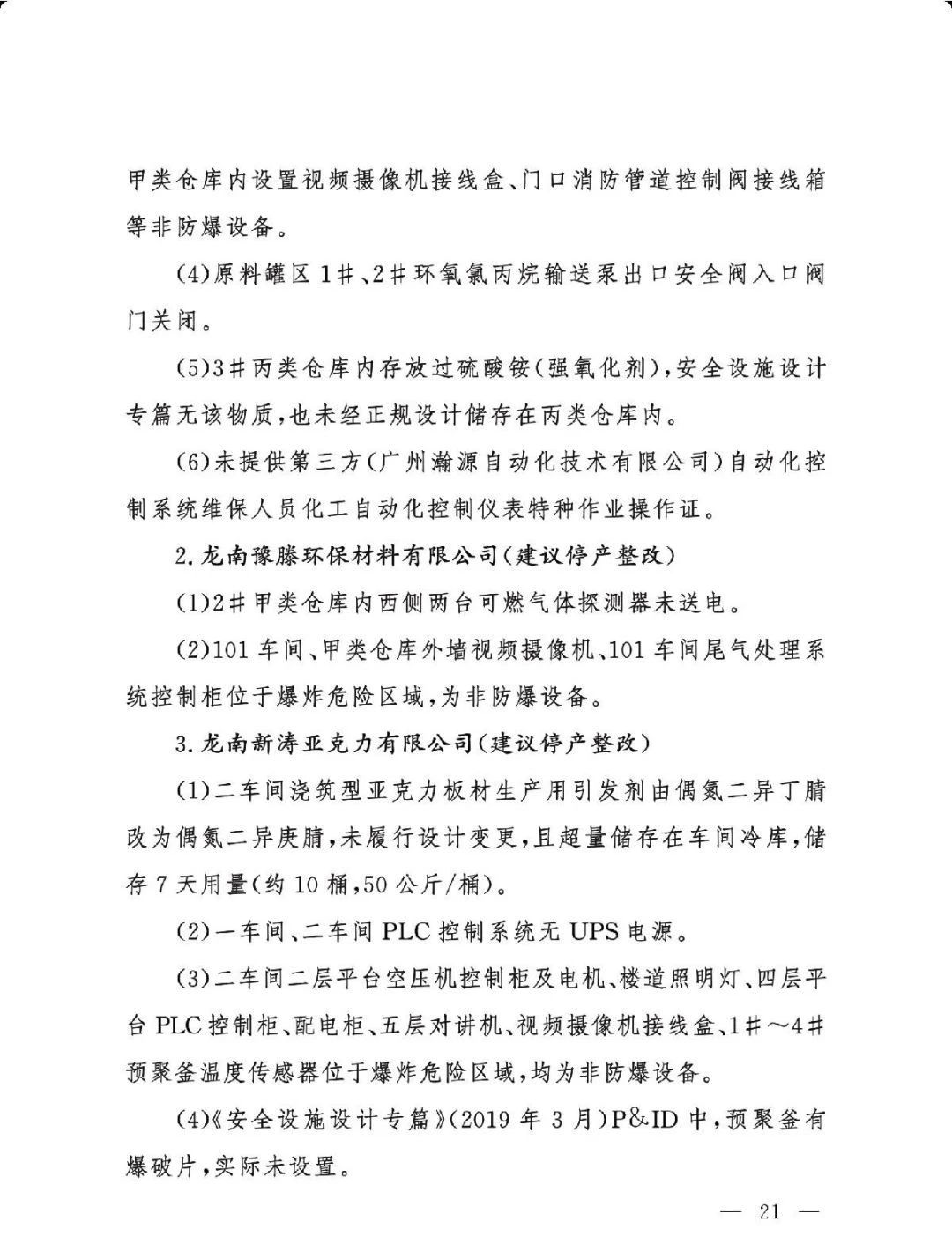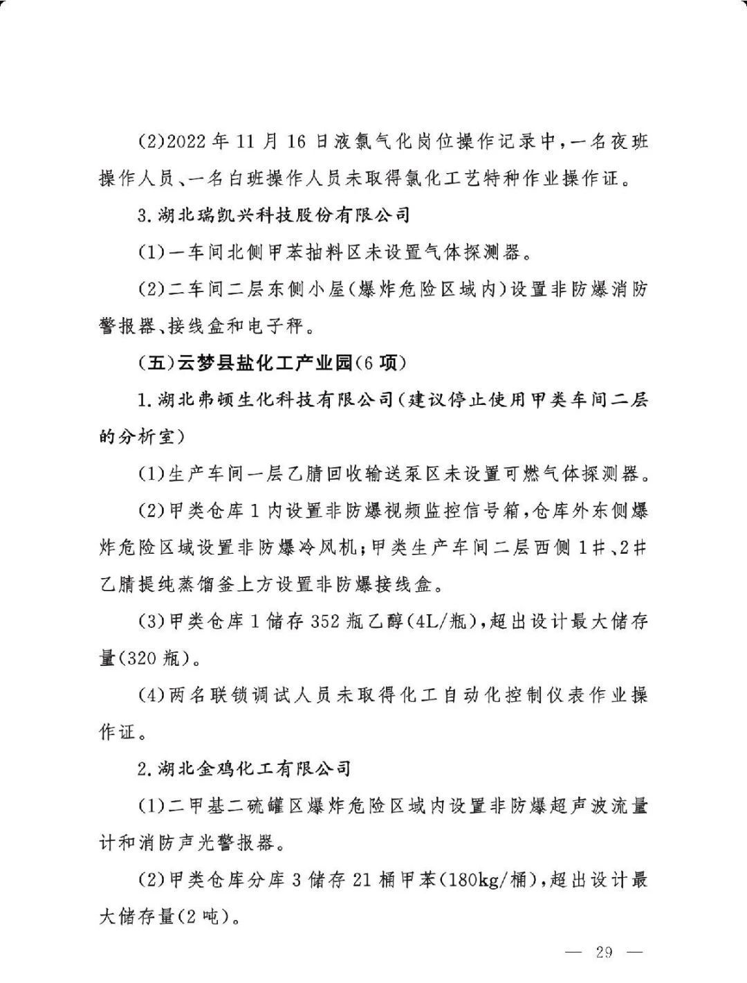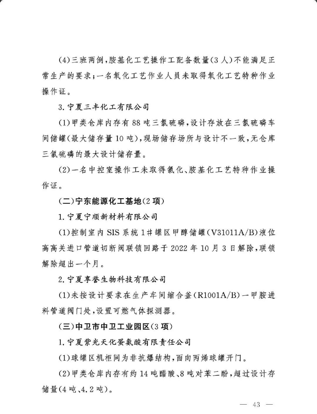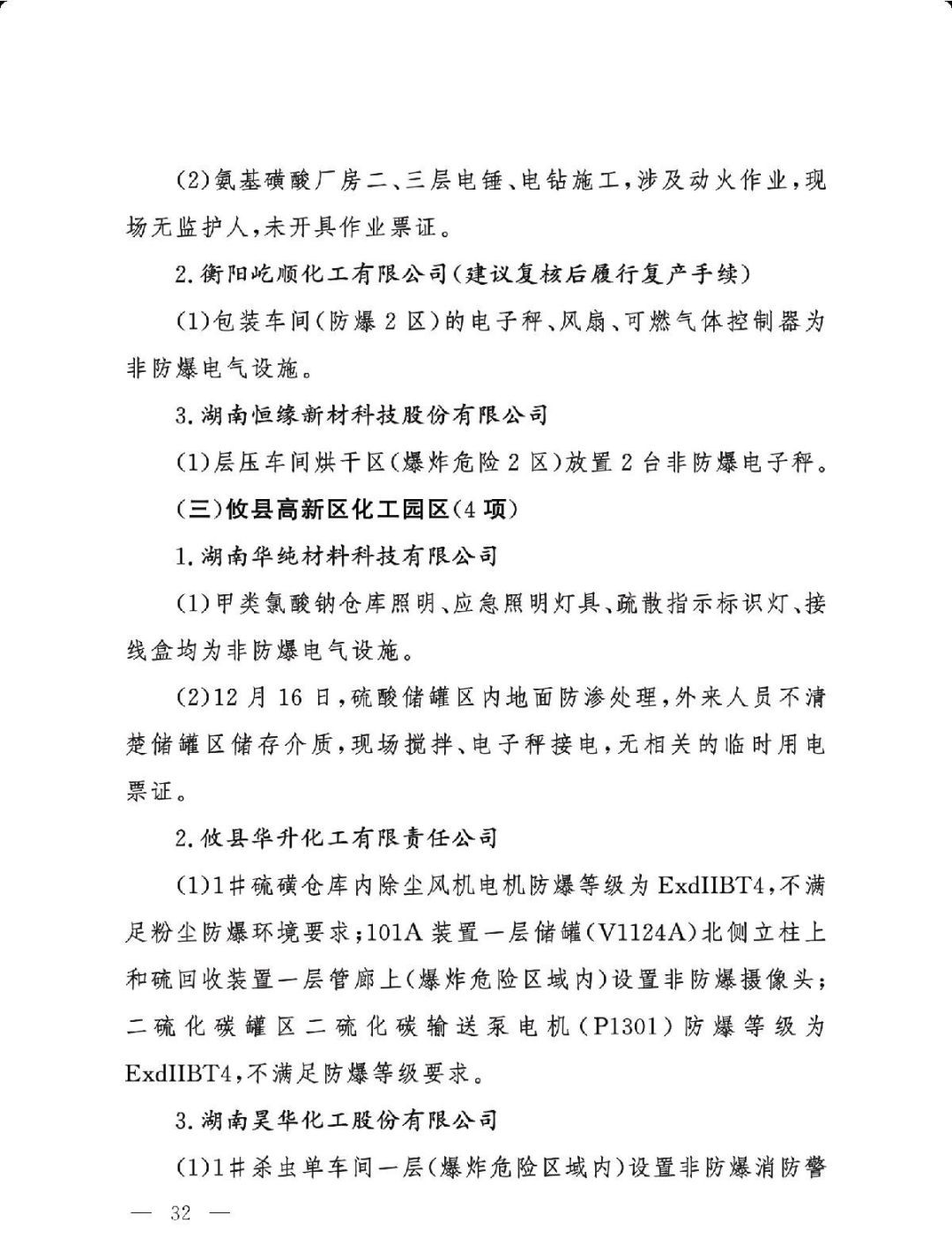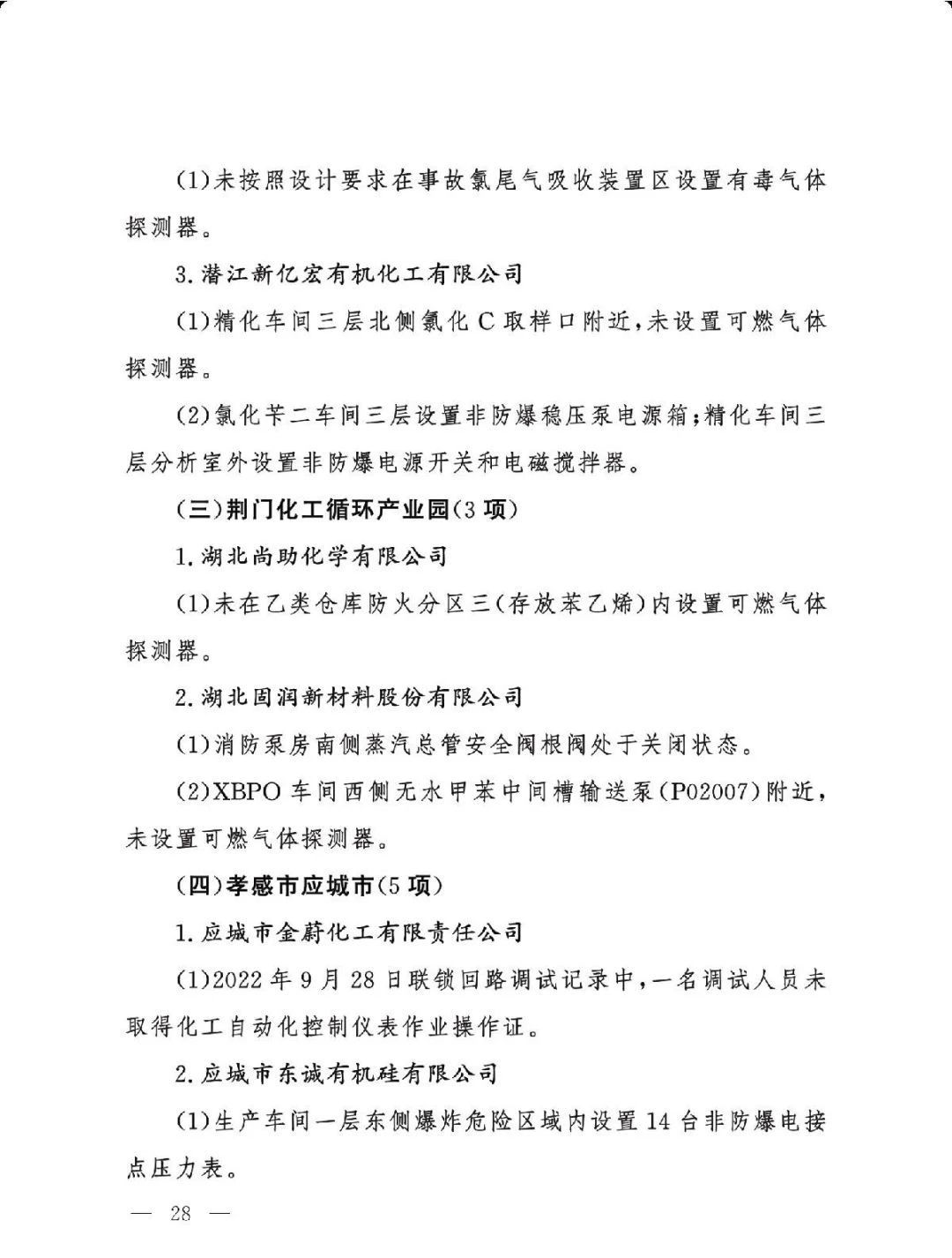 (三)严格问题整改。各有关地区要深刻吸取辽宁盘锦浩业化工有限公司“1·15”重大事故教训,有关省级安委会办公室要对248项重大隐患挂牌督办,督促企业举一反三抓紧整改,确保闭环管理,要对排名后10位的重点县(园区)进行约谈,对目前仍未认定的4个园区加快认定评估工作,对经整改提升后仍无法达到一般安全风险等级的园区取消认定化工园区资格;有关市级应急管理部门要组织对整改情况进行复核,对建议复核后履行复产手续的企业要严格复产程序;有关省级应急管理部门要组织专家对建议停产或停用相关设施设备的41家企业整改情况以及安全条件重新确认,确保具备安全生产条件后方可恢复生产。