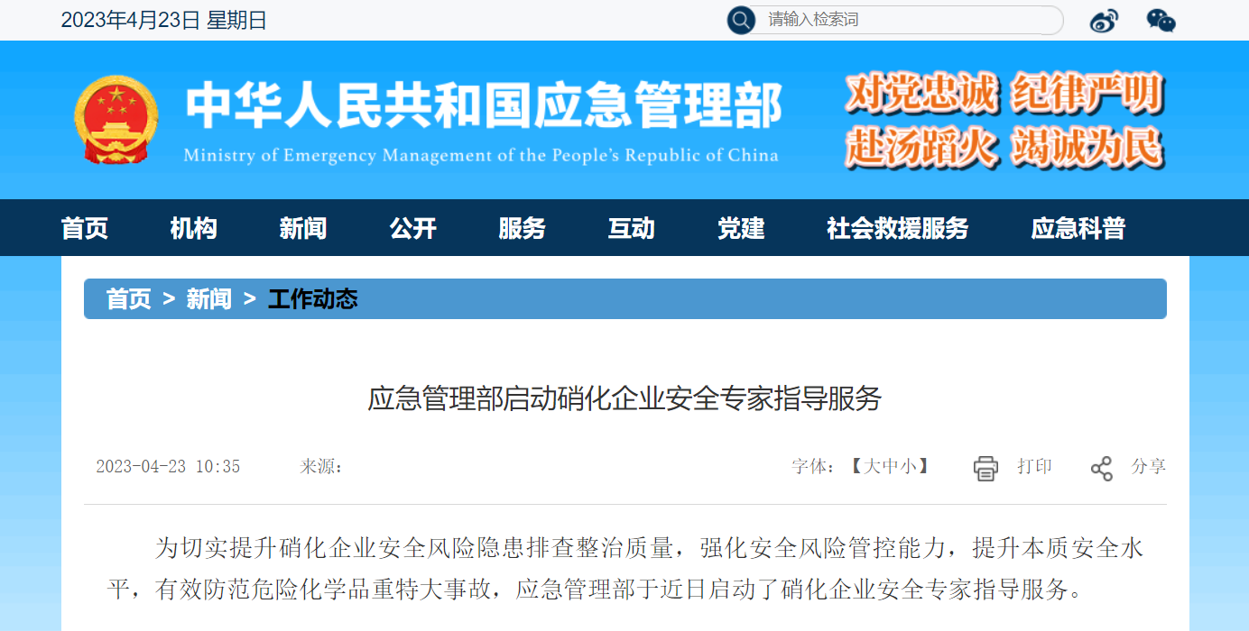 为切实提升硝化企业安全风险隐患排查整治质量,强化安全风险管控能力,提升本质安全水平,有效防范危险化学品重特大事故,应急管理部于近日启动了硝化企业安全专家指导服务。