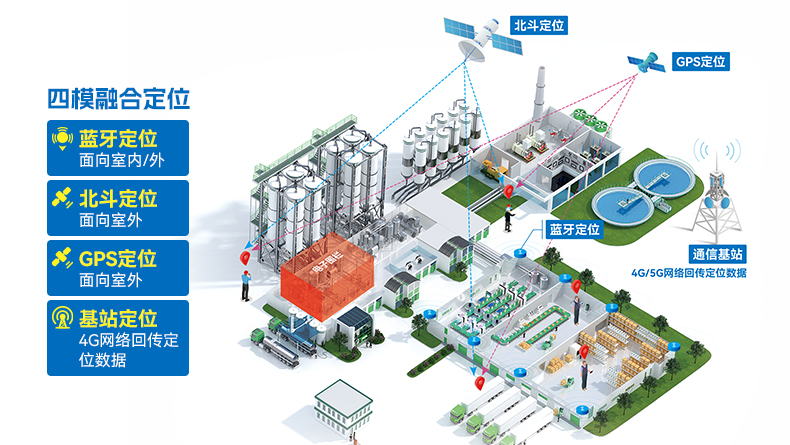 海融易通四模融合定位系统,是一套人车精准定位兼具应急指挥调度的高性能定位安全管理整体解决方案。 四模融合人员自动定位系统使用iBeacon蓝牙定位信标、人员定位终端、GPS、北斗卫星定位、运营商通信网络等设备设施以及自研优化算法,实现室内室外可视化精准定位。具备实时定位、轨迹回放、电子围栏、异动报警以及聚集报警/人员聚集风险监测预警等功能,有效识别和跟踪进入生产储存区以及特定区域的人员、车辆位置,对离岗、串岗、超员、越界等违规行为监控报警。确保作业人员人身安全,以及事故快速处置、应急救援能力。 提升安全生产风险感知评估、监测预警和响应处置能力。以信息化推进企业安全生产管理能力现代化,助力企业强化对人员的管控、监测、预警,达到企业安全生产的目的。 四模融合定位系统支持与视频监控(智能视频分析)、双重预防、重大危险源监测预警、特殊作业票等系统联动,并支持与国家、省、市、化工园区等各级管理部门监管平台对接,符合应急管理政策要求。